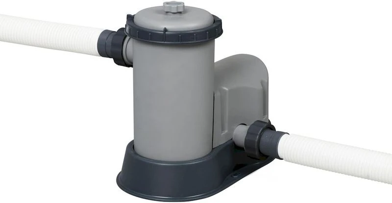 Dit zwembad wordt geleverd met filterpomp inclusief bijbehorende slangen en een filter. De filterpomp die wordt meegeleverd heeft een pompcapaciteit van 5.678 liter per uur. In ongeveer 2,5 uur heeft de pomp het zwembadwater volledig rondgepompt. Denk eraan om iedere twee weken de filter te vervangen. De filter cartridge die je nodig hebt voor de meegeleverde filterpomp is de Bestway Filter Cartridge – Type III.