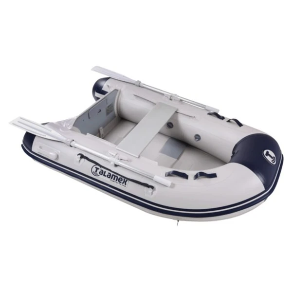 De Talamex Comfortline TLS200 is een zeer comfortabele rubberboot. De Comfortline TLS200 heeft geen opblaasbare kiel en is speciaal ontwikkeld om de boot snel vaarklaar te maken. Verder is deze rubberboot gemakkelijk klein te verpakken. Dit maakt het transporteren en opbergen erg gemakkelijk. De rubberboot is gemakkelijk op te rollen door de lattenbodem. De Talamex Comfortline TLS200 is gemaakt van hoogwaardig en duurzaam PVC. Ook heeft deze boot drie luchtkamers. Mocht er dan een luchtkamer lek raken, dan kun je altijd nog veilig aan de kant komen. Om de veiligheid altijd te kunnen garanderen, is het aanbevolen om een reddingsvest of zwemvest te dragen tijdens het varen met de Talamex Comfortline TLS200. Alle Talamex rubberboten zijn door de Dutch Marine Inspection CE gecertificeerd, waardoor ze aan alle Europese eisen voldoen.
